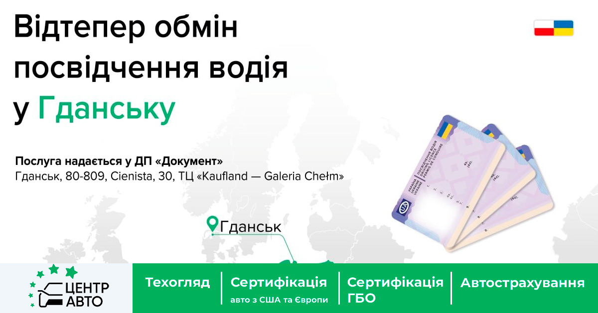 Гданськ став другим містом у Польщі, де можна отримати послугу обміну національного посвідчення водія, виданого в Україні.